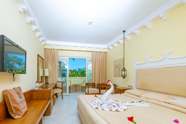 The family-friendly hotel is situated directly next to its own private beach with promenade, right in the middle of a very generous, wonderfully landscaped park complex. The popular hotel is located around 10 km from the centre of Hurghada.